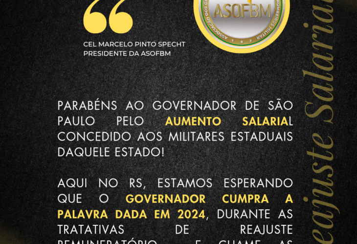 Na manhã de ontem, na Academia de Polícia Militar, o Presidente da Asofbm, Cel PM RR Marcelo Pinto Specht, a convite do diretor do DS, Cel PM Régis Reche, palestrou aos alunos do CBOS sobre a missão e o trabalho da Asofbm em defesa dos militares estaduais, em especial dos oficiais da CNS da Brigada […]