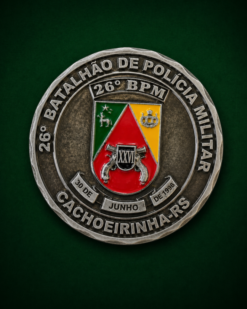 A ASOFBM teve a honra de receber, das mãos do Comandante do 26º BPM, Tenente-Coronel Meirelles, e do Major Fagundes, a Challenge Coin da unidade — símbolo de reconhecimento, tradição e espírito de corpo.