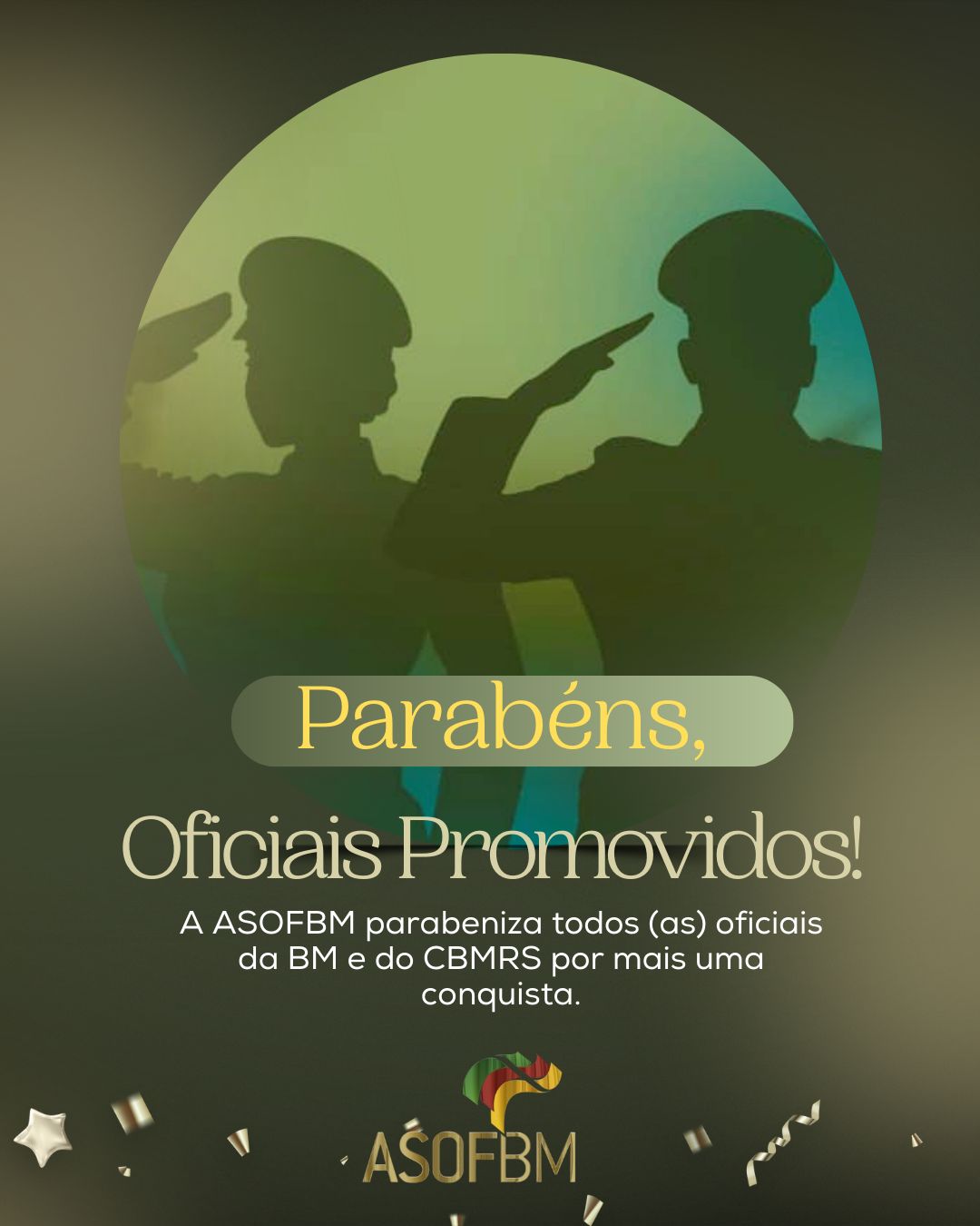 A ASOFBM saúda os Oficiais da Brigada Militar e do Corpo de Bombeiros Militar promovidos na data de hoje, desejando pleno êxito e sucesso nos novos postos e funções!